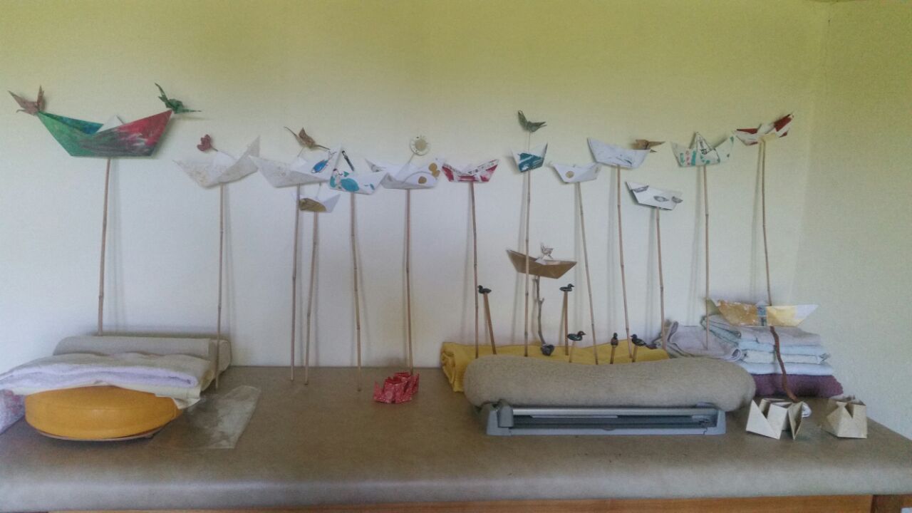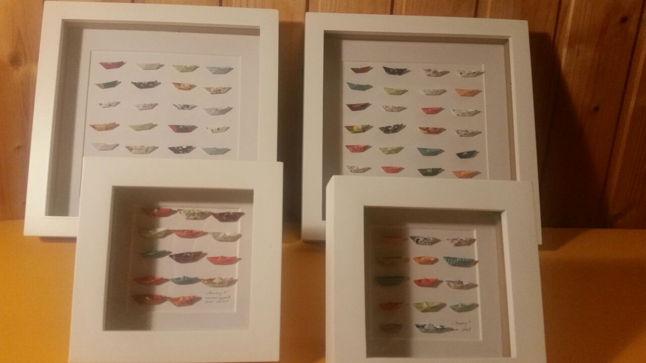 Gefaltet wird hier alles und zwar klein und kleiner. Engel, Kraniche, Blüten, Boote, Dampfer und Tüten.