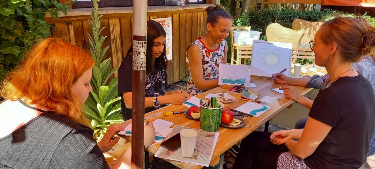 Ein Tag zur Besinnung und für die innere Einkehr zur Auffüllung unserer "Tanklager". Am Vormittag werden wir im Raum meditieren uns spüren und wahrzunehmen. Nach einer warmen Mahlzeit und Mittagspause wollen wir im Garten das Wahrgenommene und Empfundene auf Papier und Leinwand bringen.