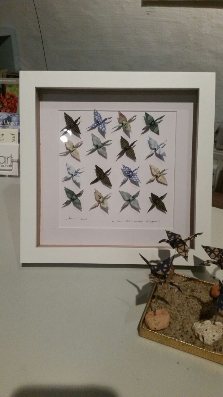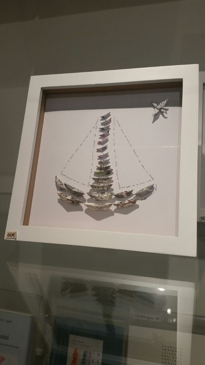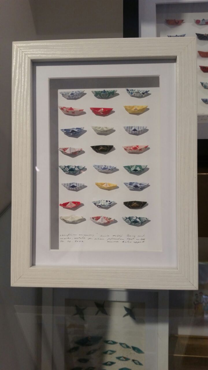 Gefaltet wird hier alles und zwar klein und kleiner. Engel, Kraniche, Blüten, Boote, Dampfer und Tüten.