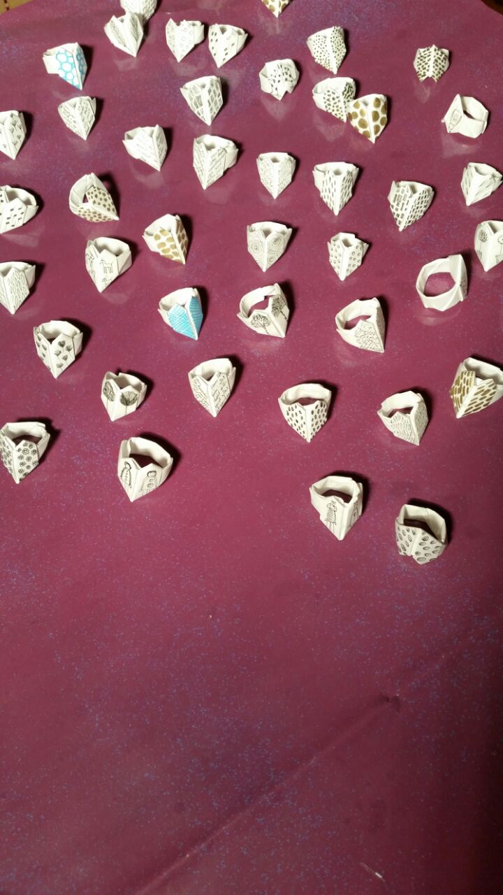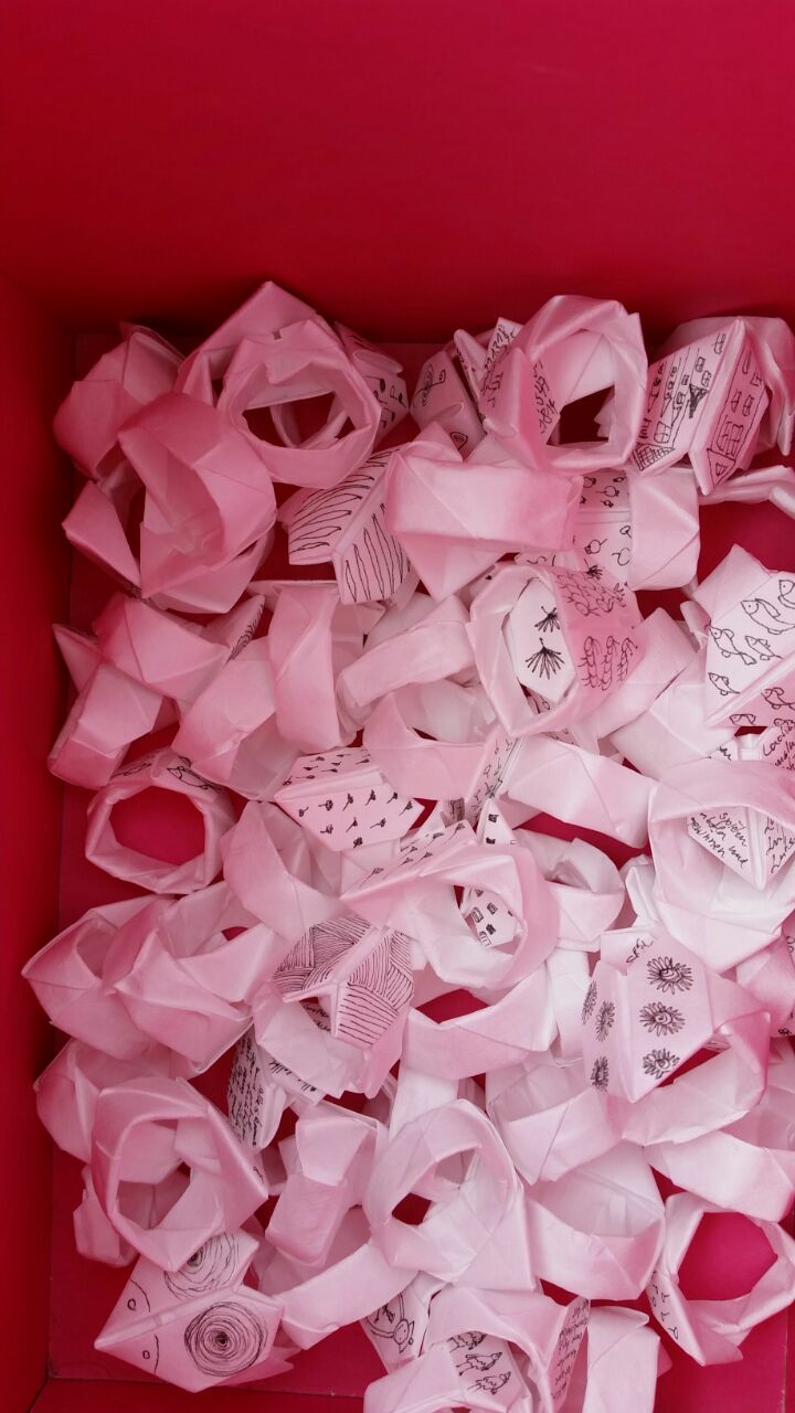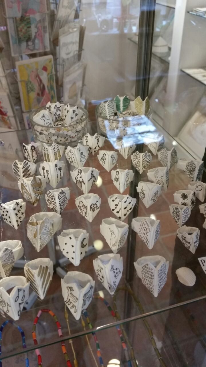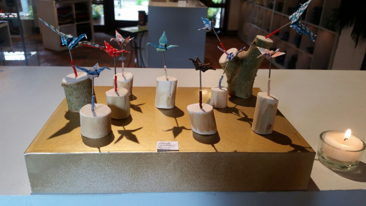 Gefaltet wird hier alles und zwar klein und kleiner. Engel, Kraniche, Blüten, Boote, Dampfer und Tüten.