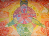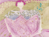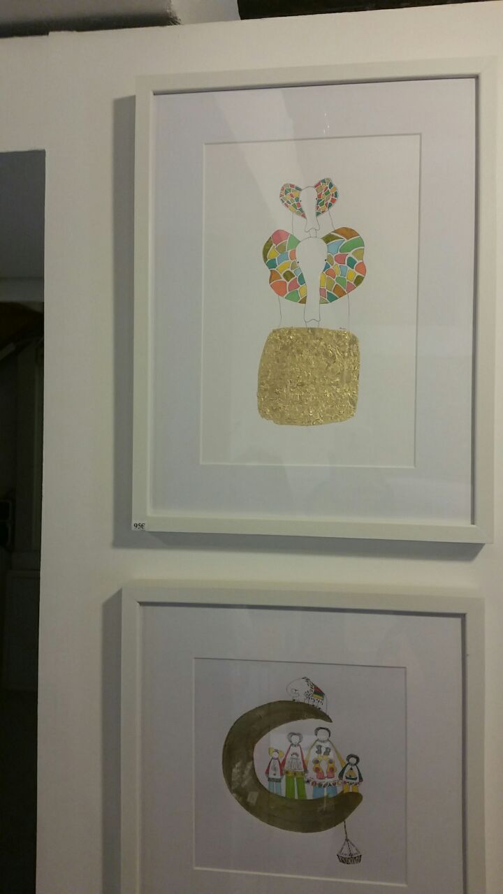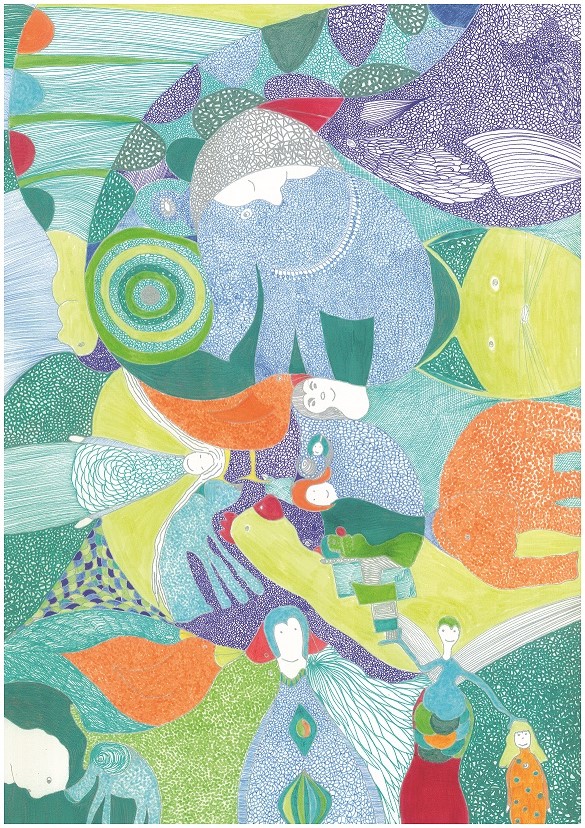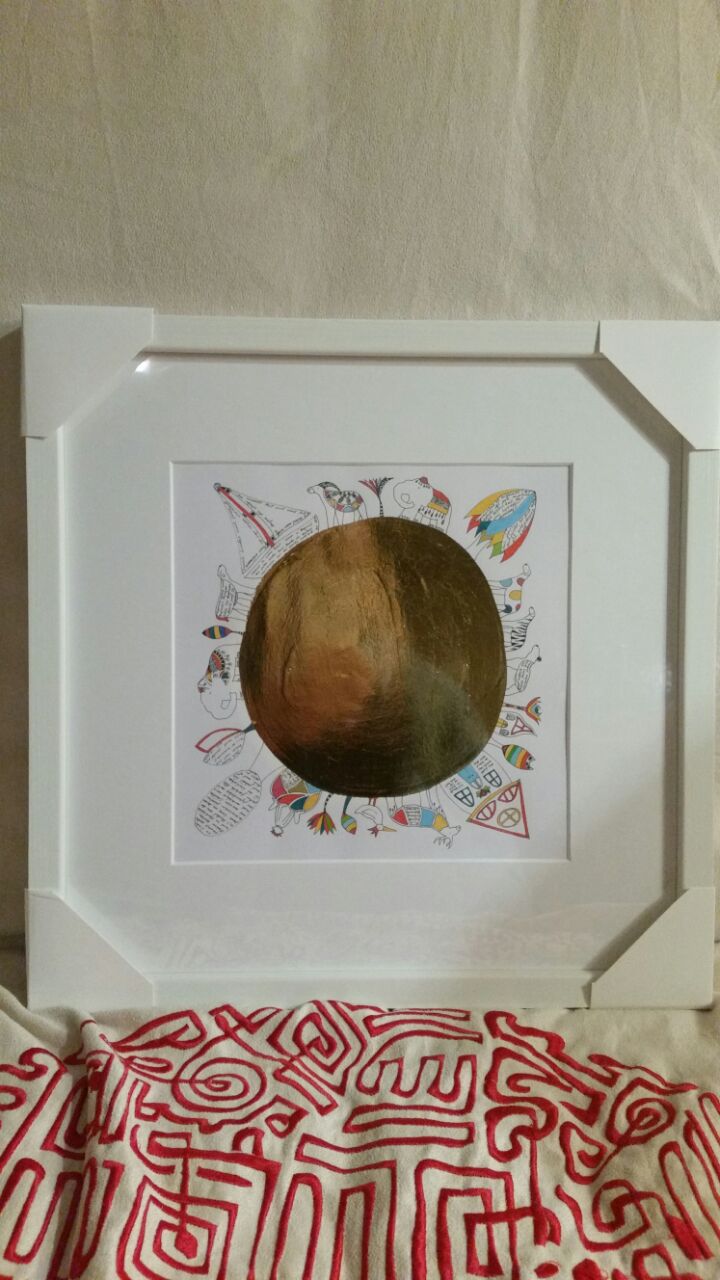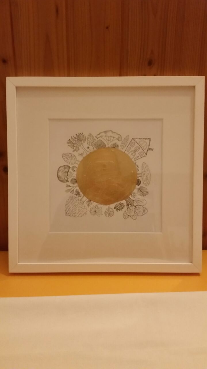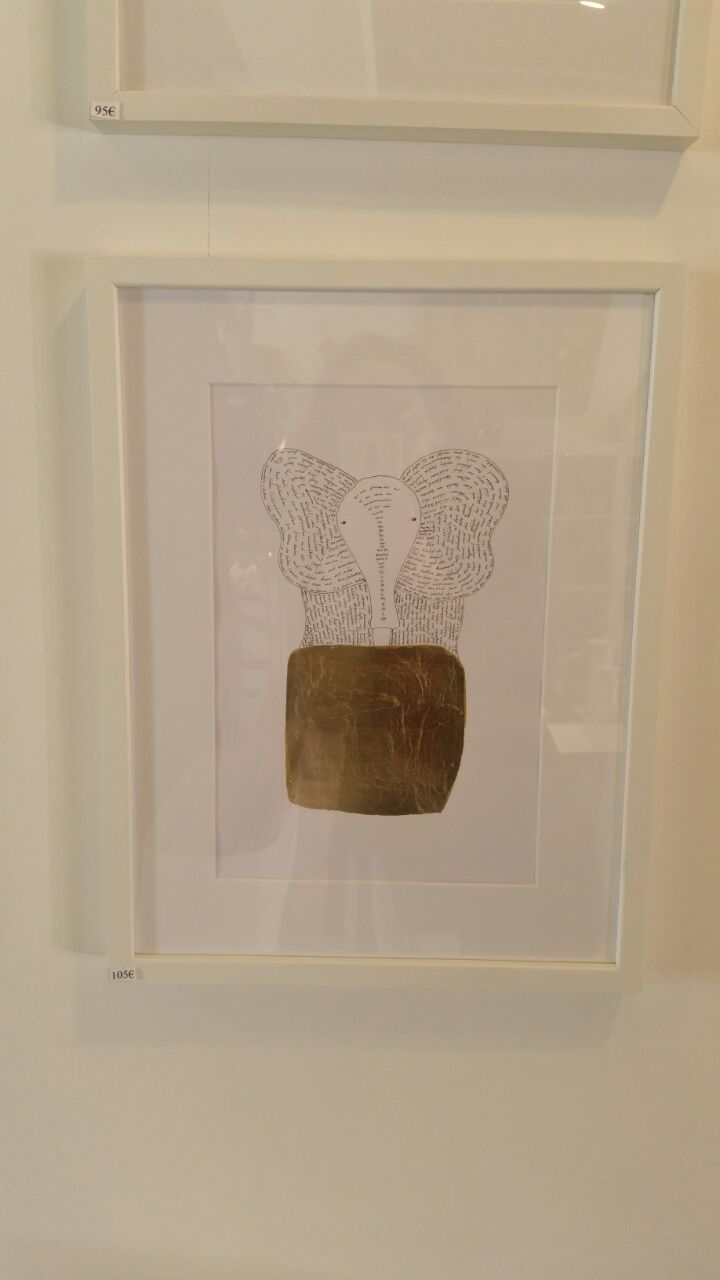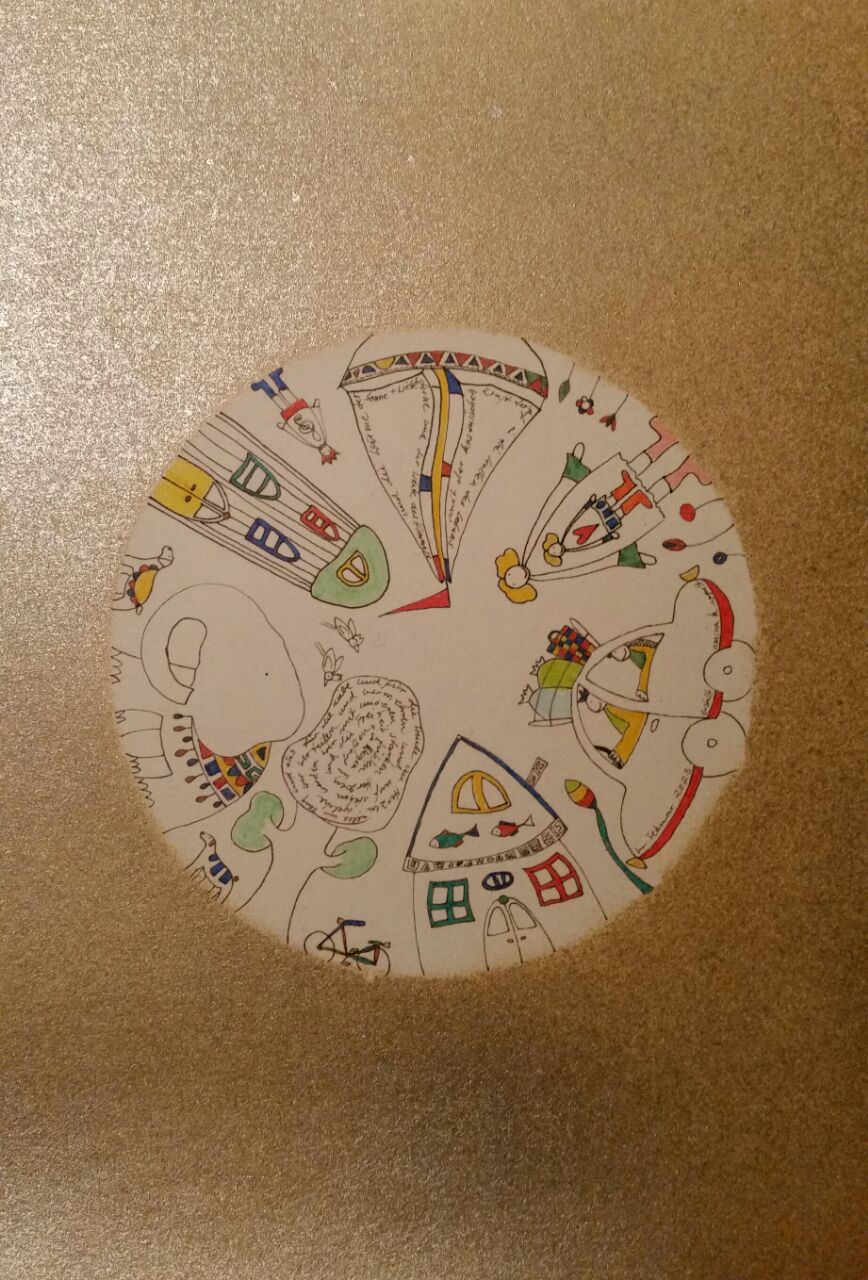 Finelinerarbeiten mit Blattmetall versehen. Die Fineliner haben eine Minenspitze von 0,03 - 0,05 mm. Filigrane Details treffen auf bewegte Gold - und Bronzeornamente.